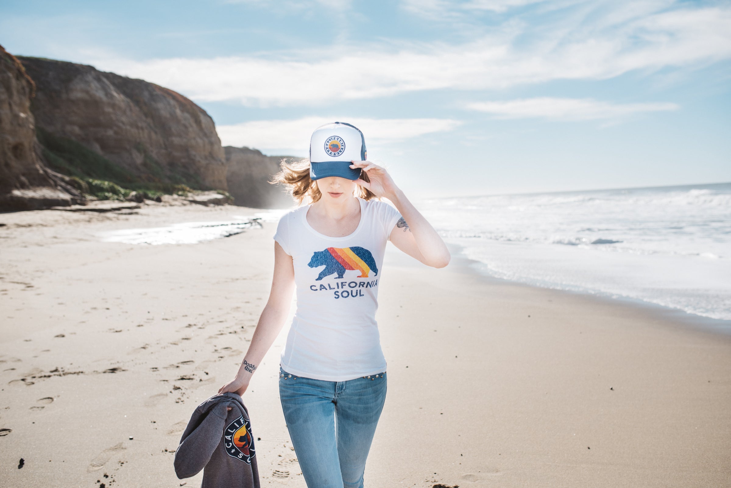 Embroidered California Soul Brown Bear Circle Logo Retro Trucker Cap